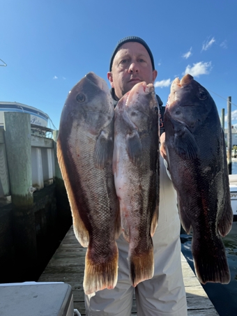 The Fall blackfishing season is in full swing. Good action with lots of short life and quality keepers. Fishing local reefs, wrecks and rock pilers. The fishing will only get better as the water temps drop - still in high 50's.